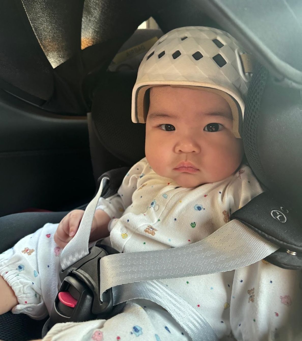 調べてみると、最近、0歳児の頭の形を矯正するヘルメットがはやっているらしい。