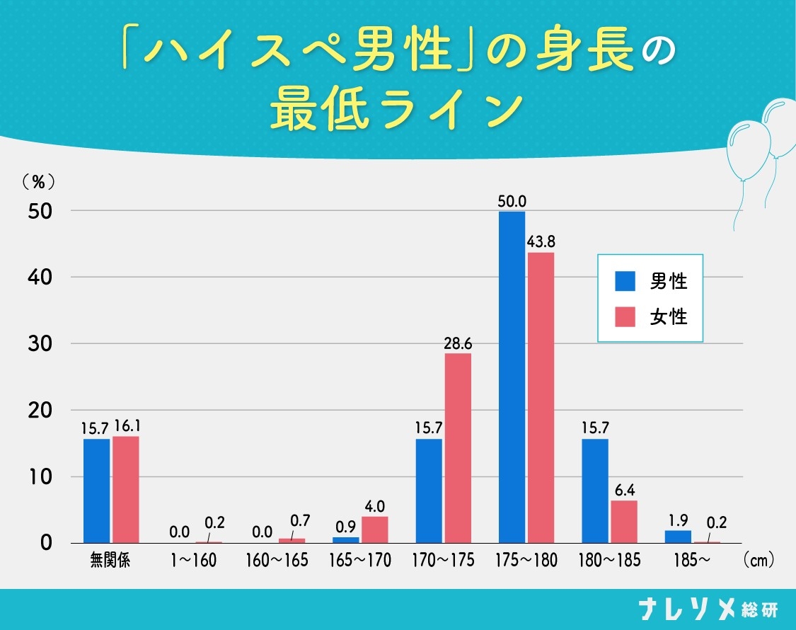 その中でも、「あなたが考えるハイスペ男性における身長の最低ラインとは?」の質問に対する回答をまとめたのが以下のグラフです。