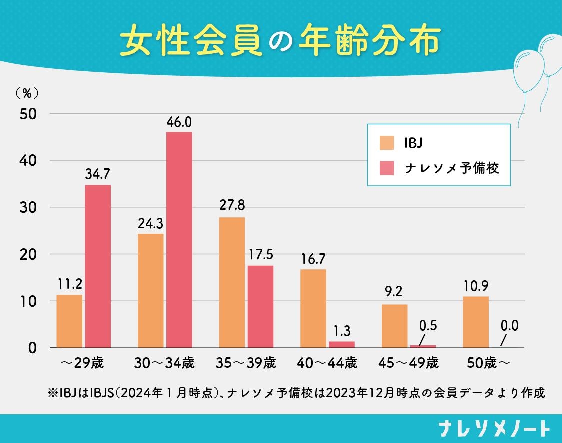 例えば、結婚相談所ナレソメ予備校では、上のグラフのように20代~30代前半の若い世代を中心とした多くの会員が登録しています。また、この層に特化した活動支援を行い、効率的かつ充実した婚活が可能な環境を提供しています。若い世代の女性と出会いたい男性は、こうした特徴を持つ相談所を選ぶことが重要です。