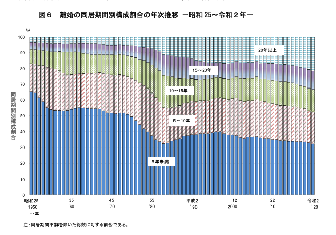 → 適齢期の人口が減っているため、新規の婚姻数が減少している。 - 昔に結婚した人たちの熟年離婚が増えている