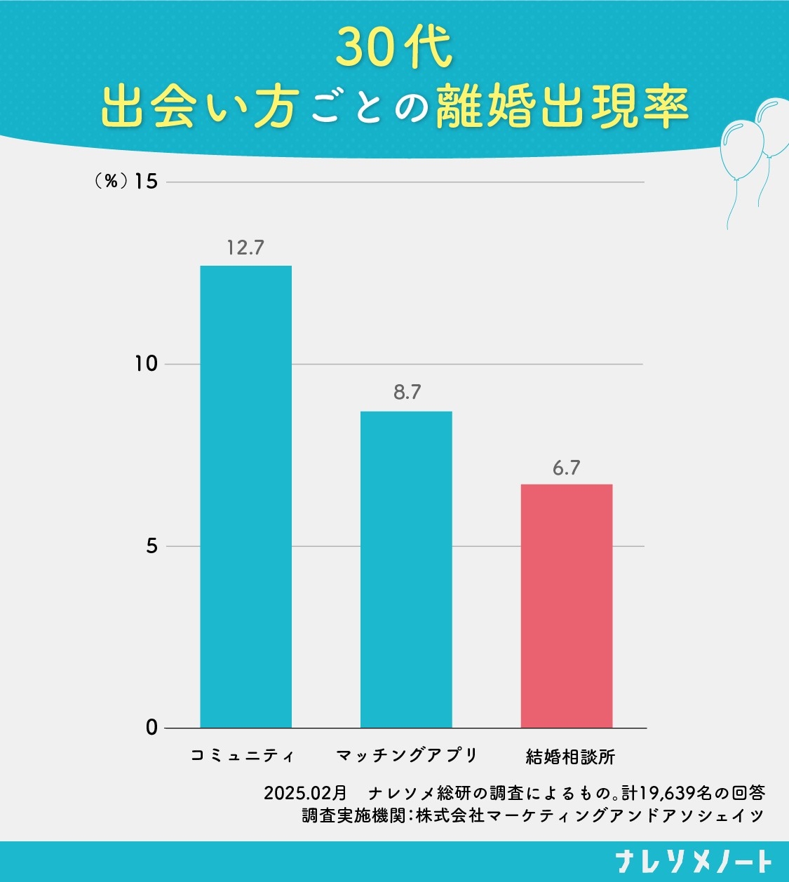 コミュニティ(友人・職場・紹介など)やマッチングアプリといった他の出会いの手段と比較して、結婚相談所婚が最も離婚率が低いことが、今回の調査で明らかになりました。