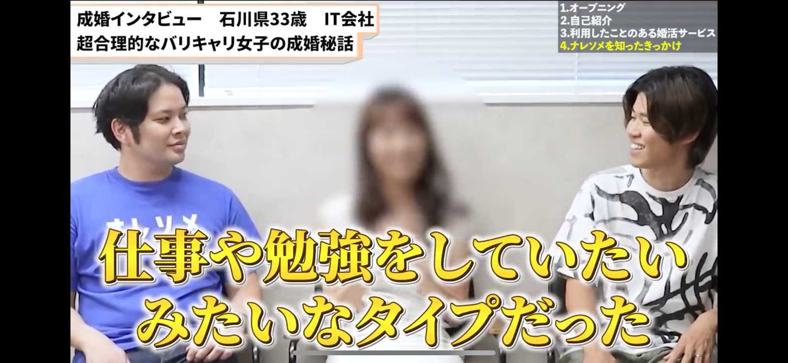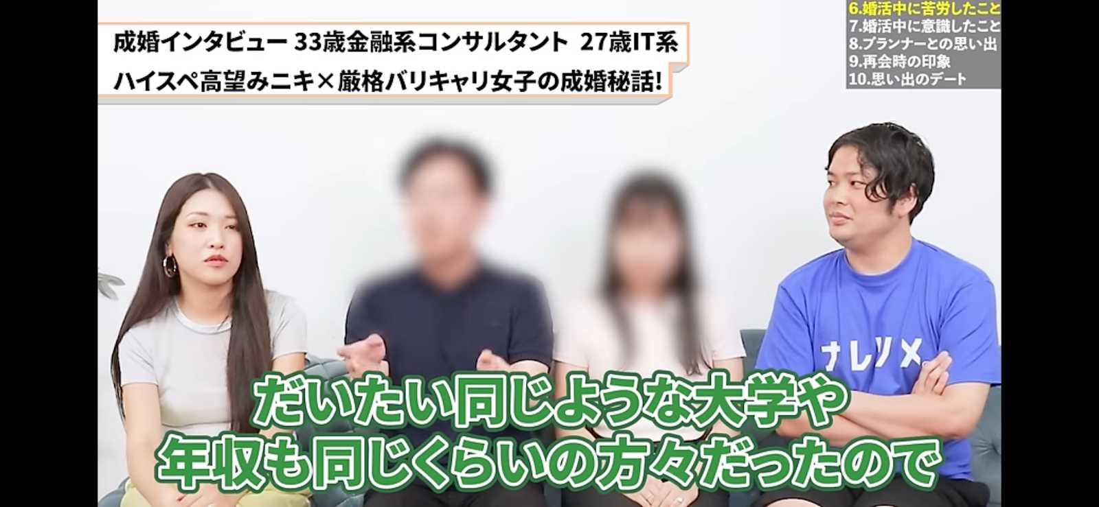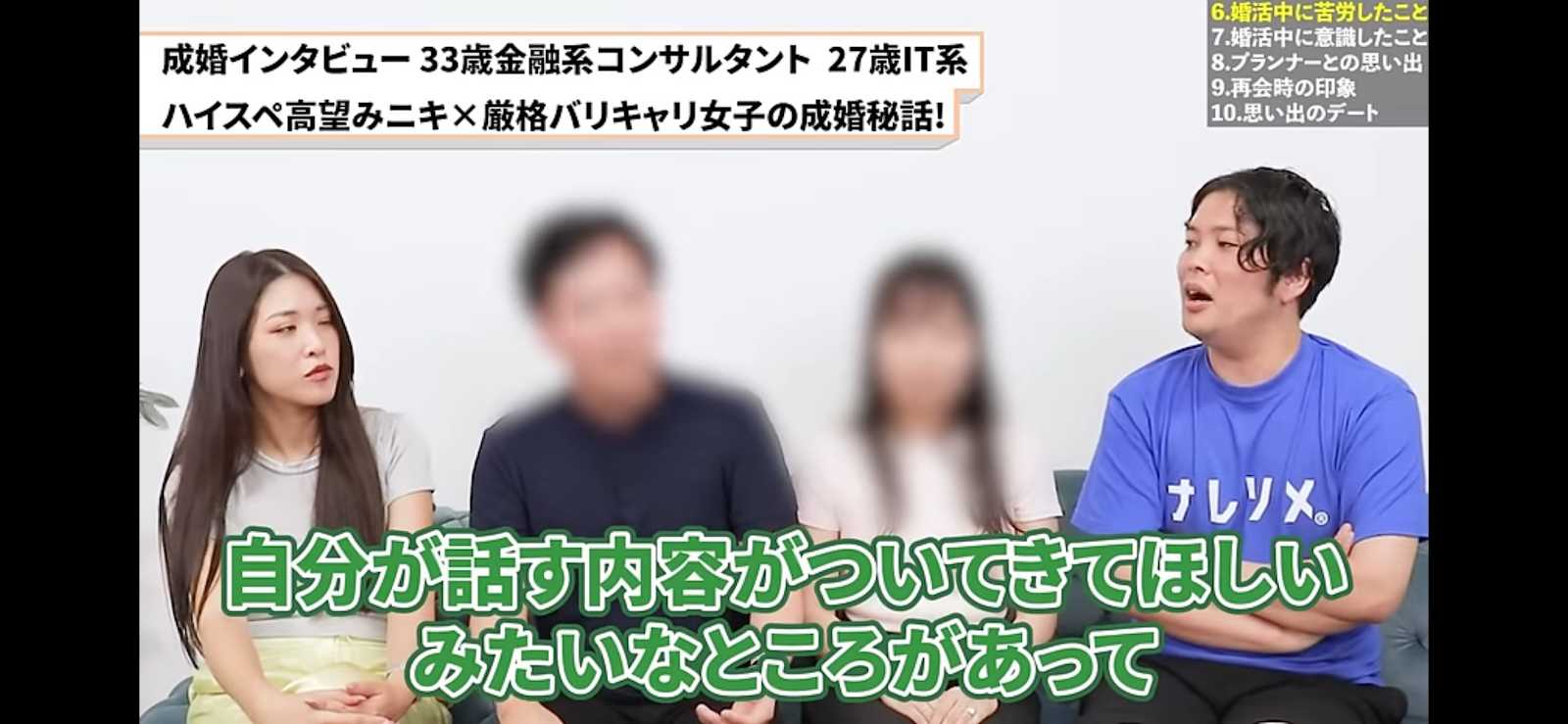 ▶動画全編:【成婚後インタビュー】年収1,000万円超えハイスペ男性が婚活した結果、〇〇な女性を選びました【婚活体験談】