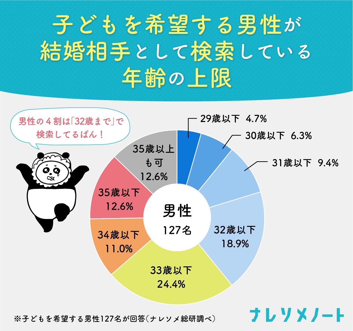 これは、婚活男性の94%が子どもを希望しており、33歳の女性は「高齢出産ぎりぎり」と見なされるというのが大きいでしょう。