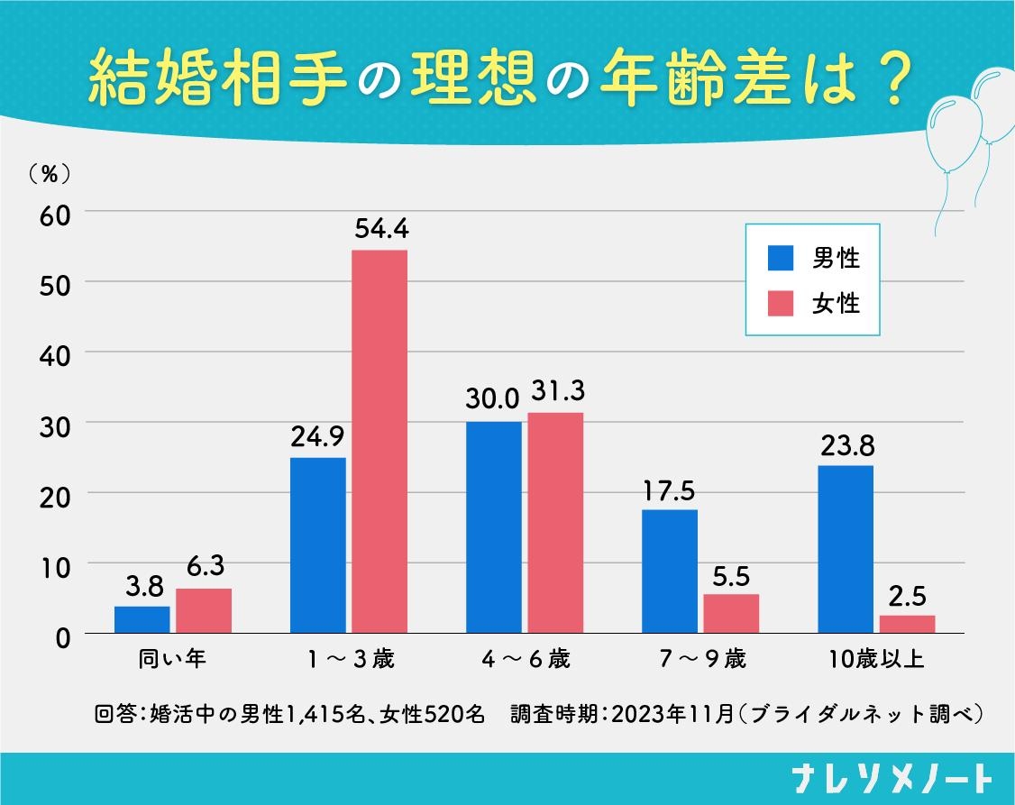 データ出典:PR TIMES 「IBJ【年の差婚はあり?なし?】婚活者が考える理想の“年の差”とは⁉」