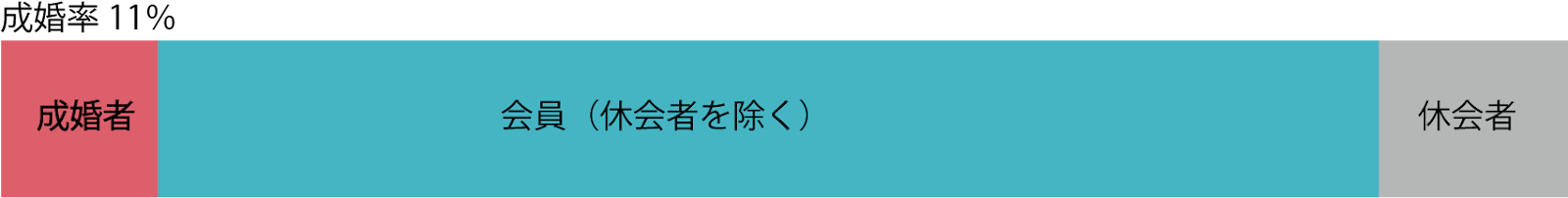期間内の会員全体から休会中の会員数を除外して、成婚退会した人の割合を出す方式です。
