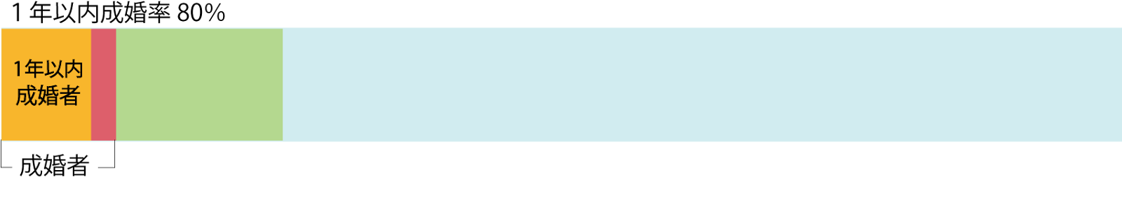 A結婚相談所で成婚した10人のうち、8人が1年以内に成婚している場合、1年以内成婚者8÷成婚者10=0.8、80%となります。
