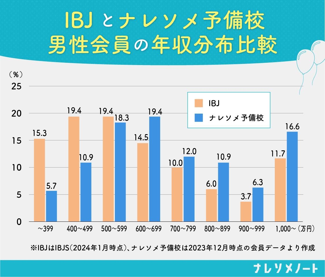 【IBJとナレソメ予備校の男性会員の比較/年齢分布と年収分布】